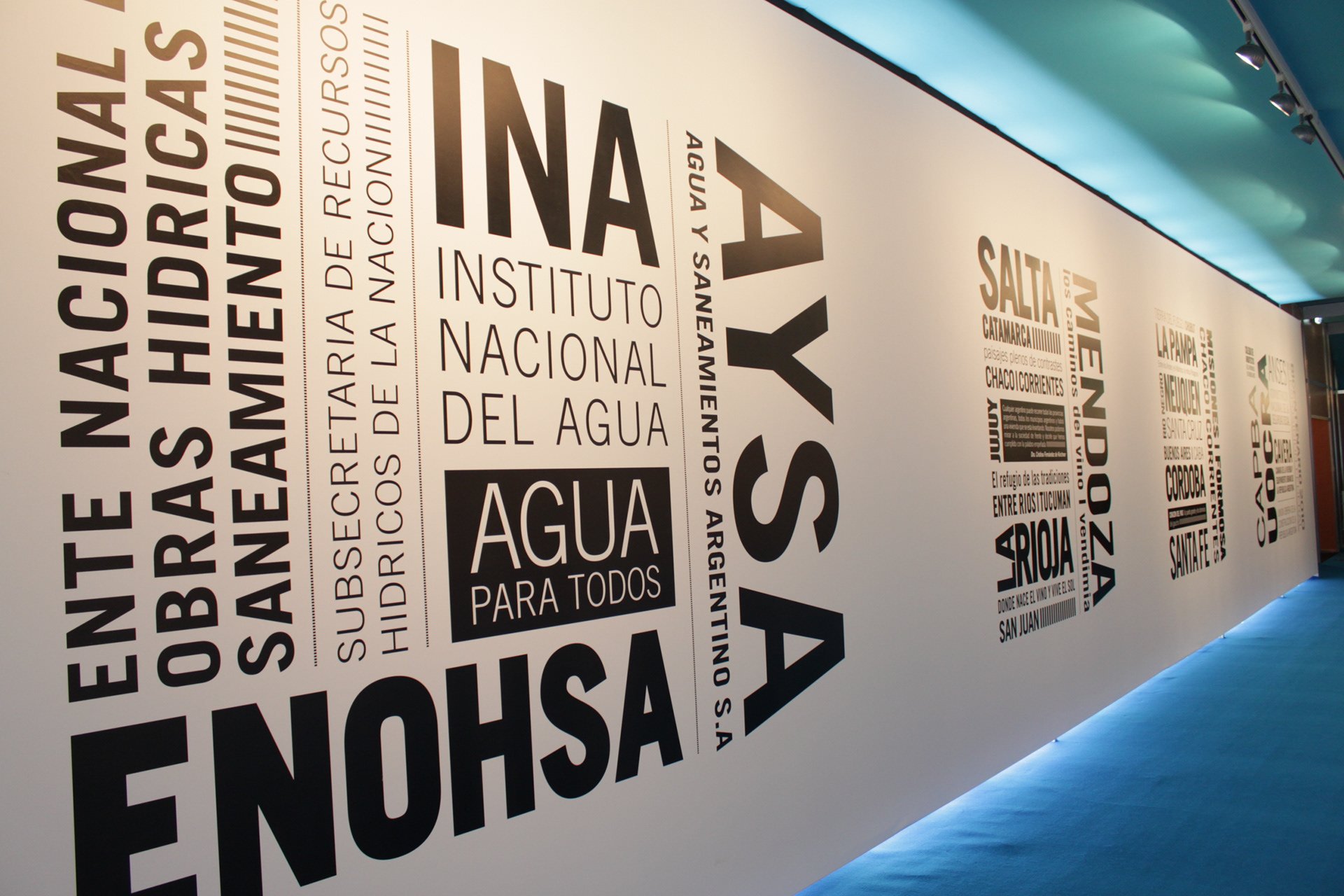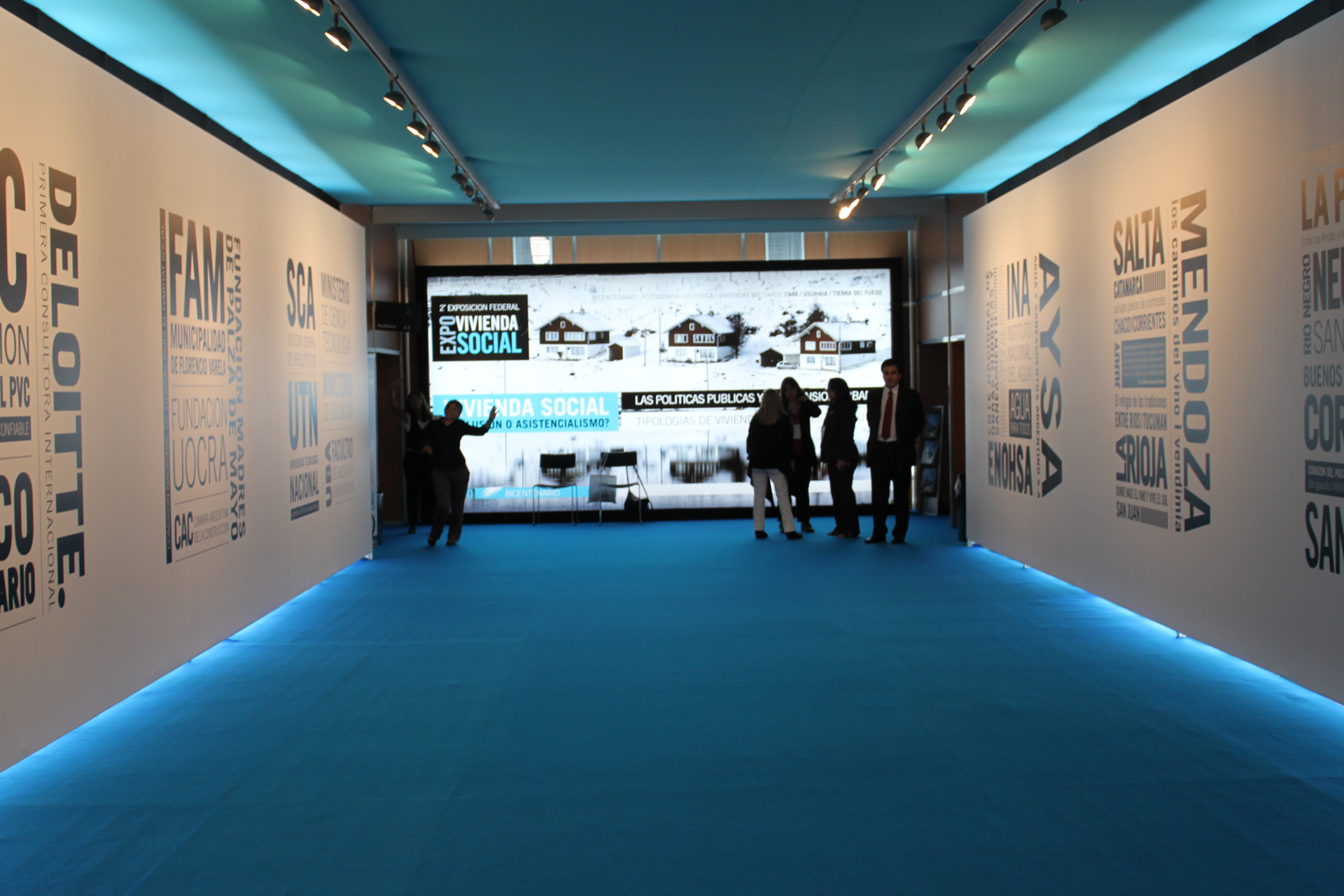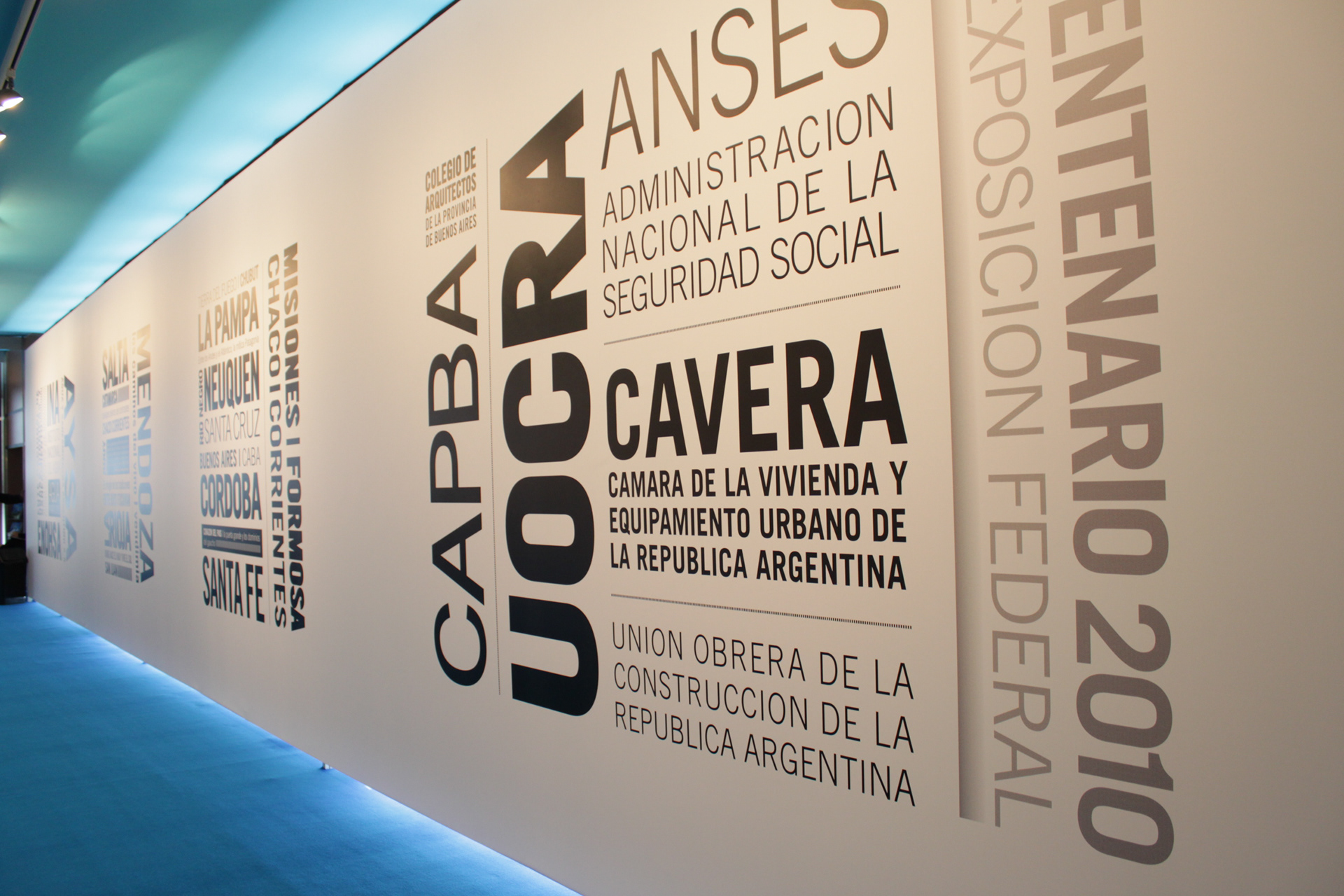 Composición tipográfica, gigantografía en pasillo. Expo vivienda social Exposición Costa Salquero