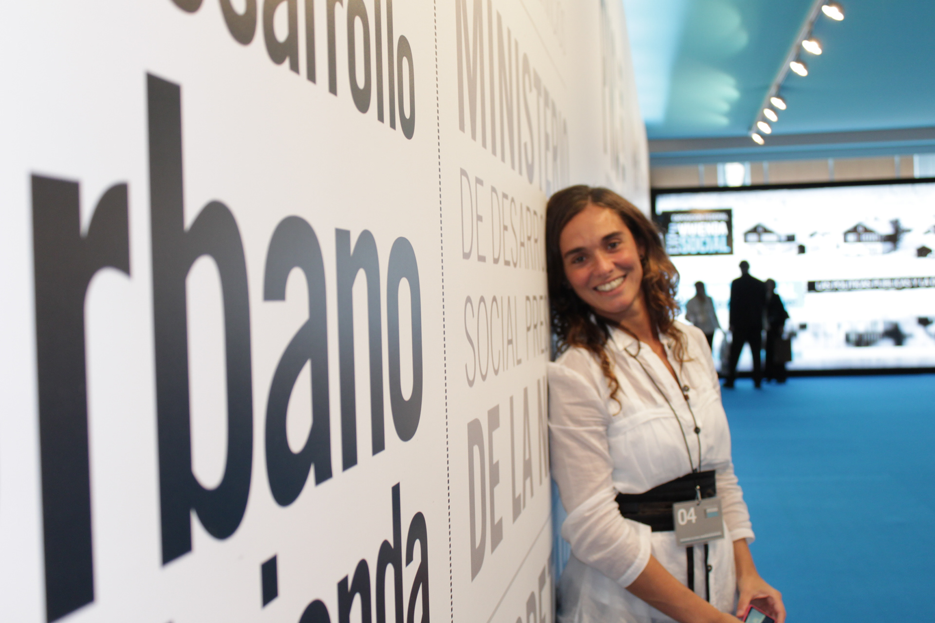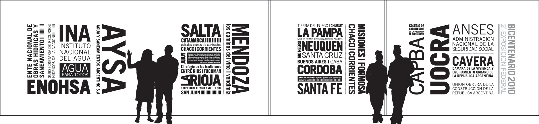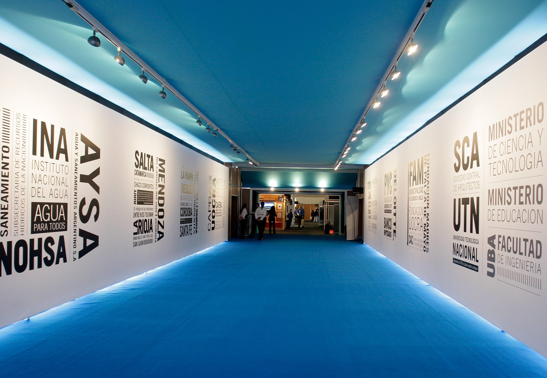 Composición tipográfica, gigantografía en pasillo. Expo vivienda social Exposición Costa Salquero