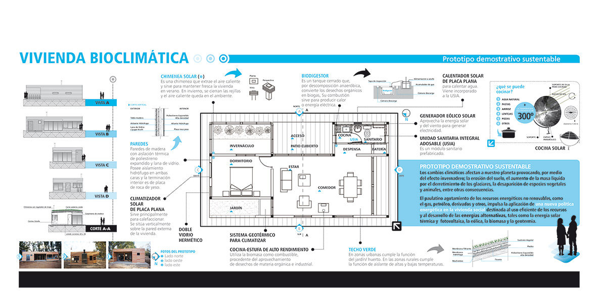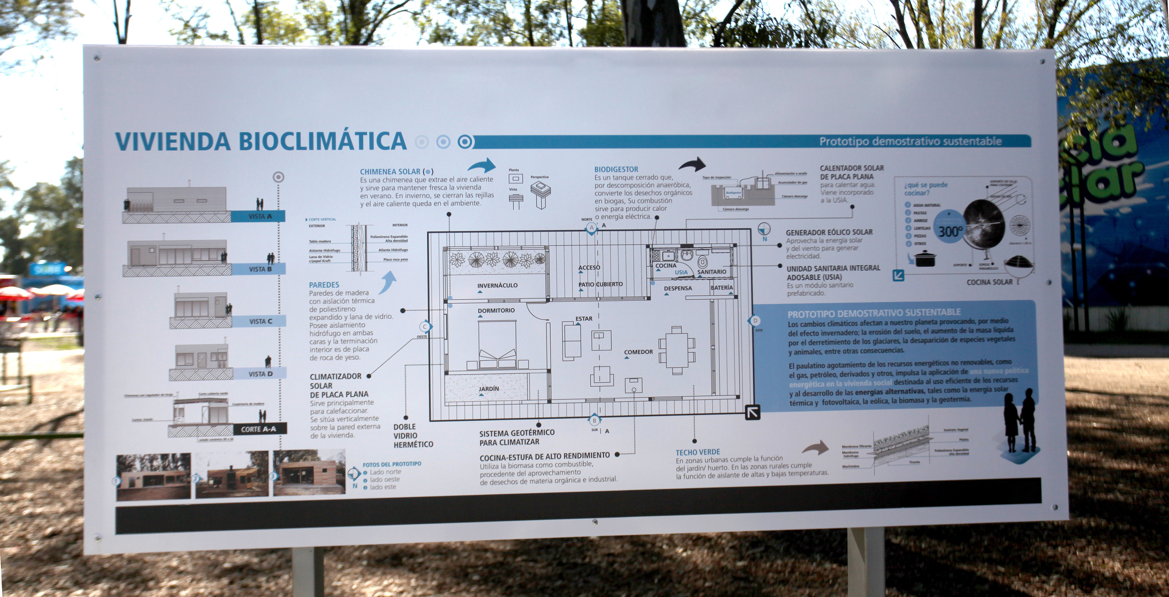 Diseño de infografías informativas en Prototipo de Vivienda Bioclimática en Predio Tecnópolis. es una megamuestra de Arte, Ciencia y Tecnología. Villa Martelli, Vicente López, provincia Buenos Aires.
