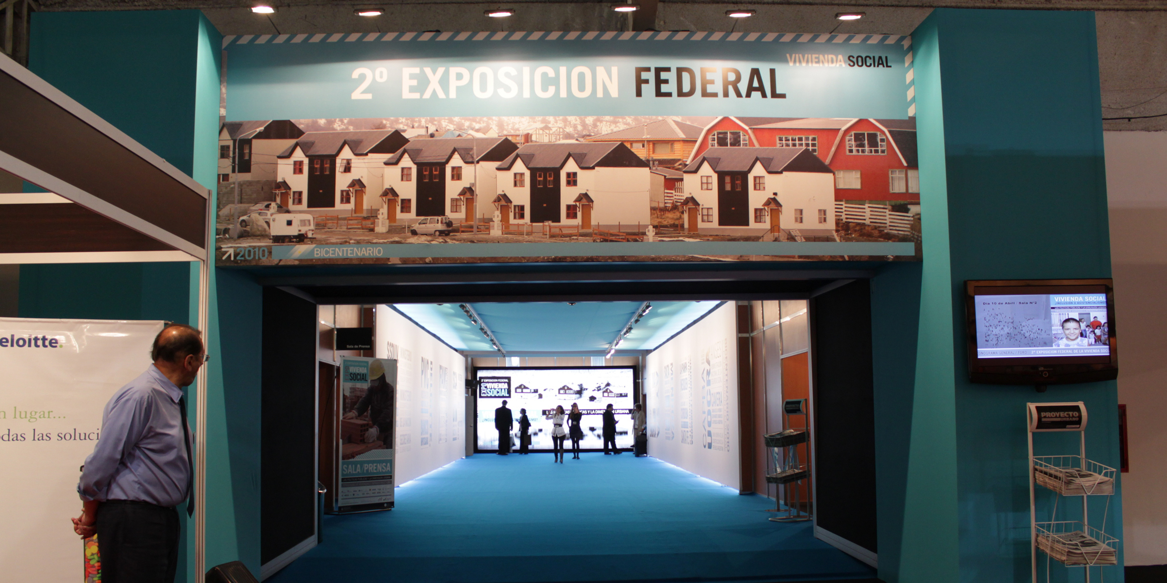 Diseño de cartelería en pórtico. gigantografía. Expo vivienda social. Costa Salguero.