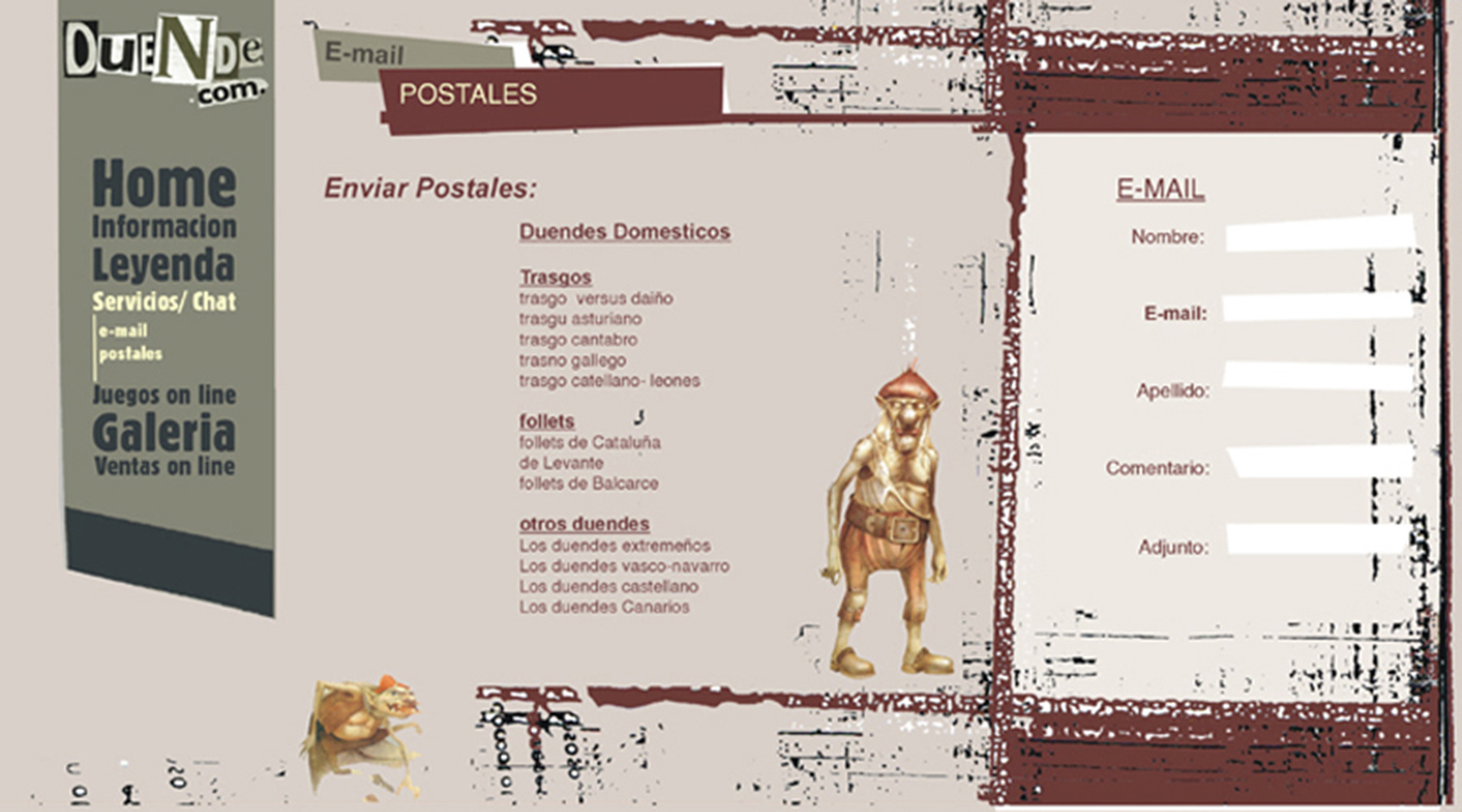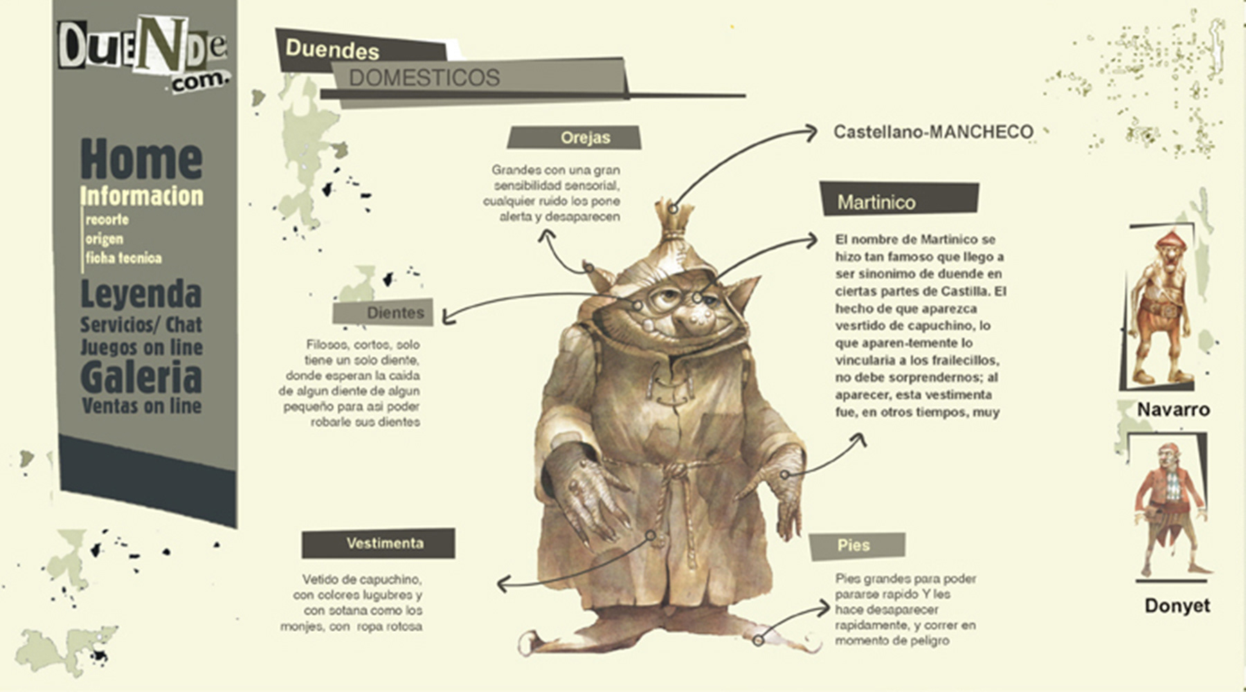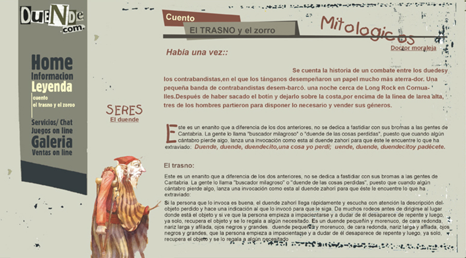 Diseño de web. Sitio de cuentos de duendes + juegos. Cliente. Duende.com, duendes hadas y gnomos. Espíritus vinculados a las casas y a los humanos. Web cuentos