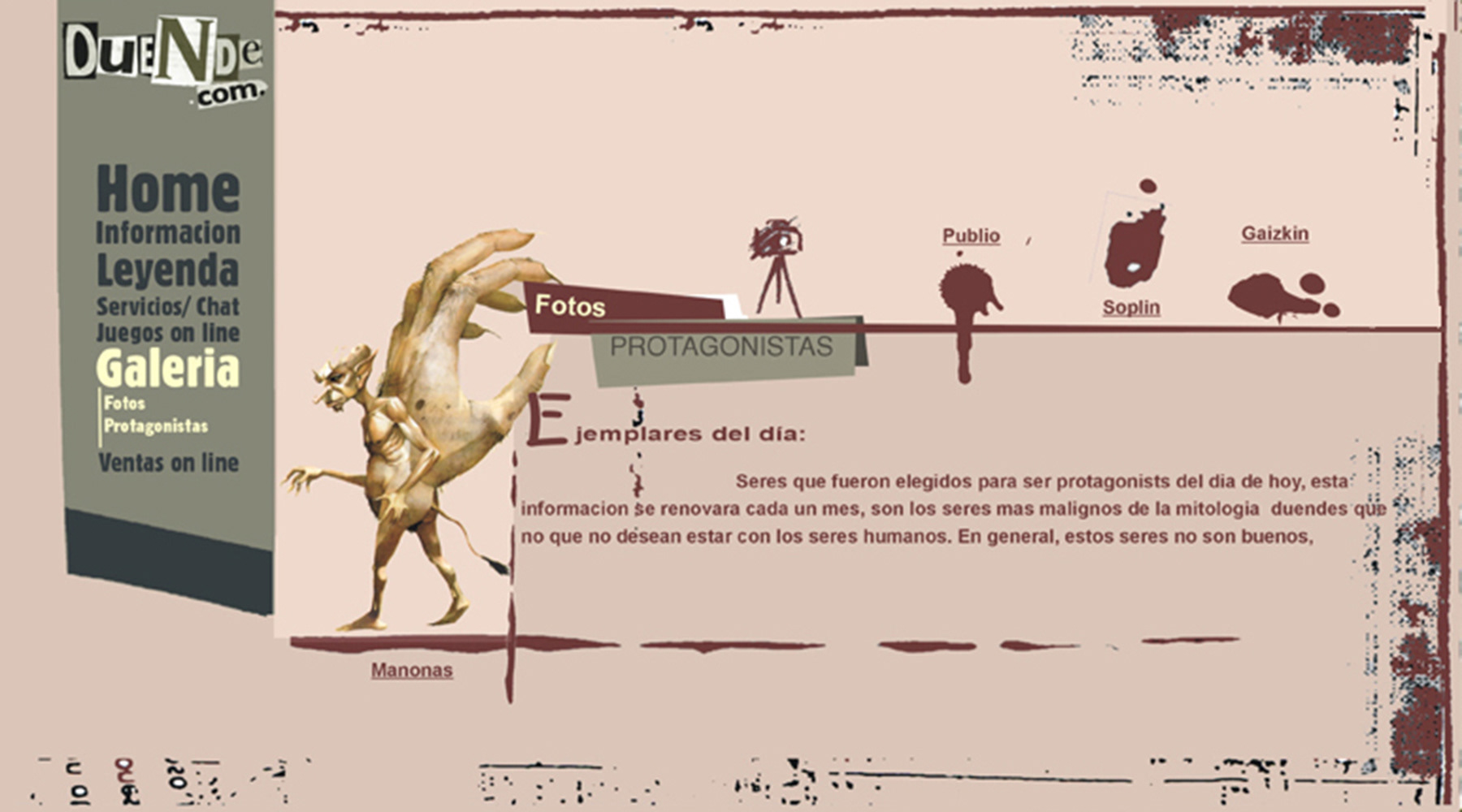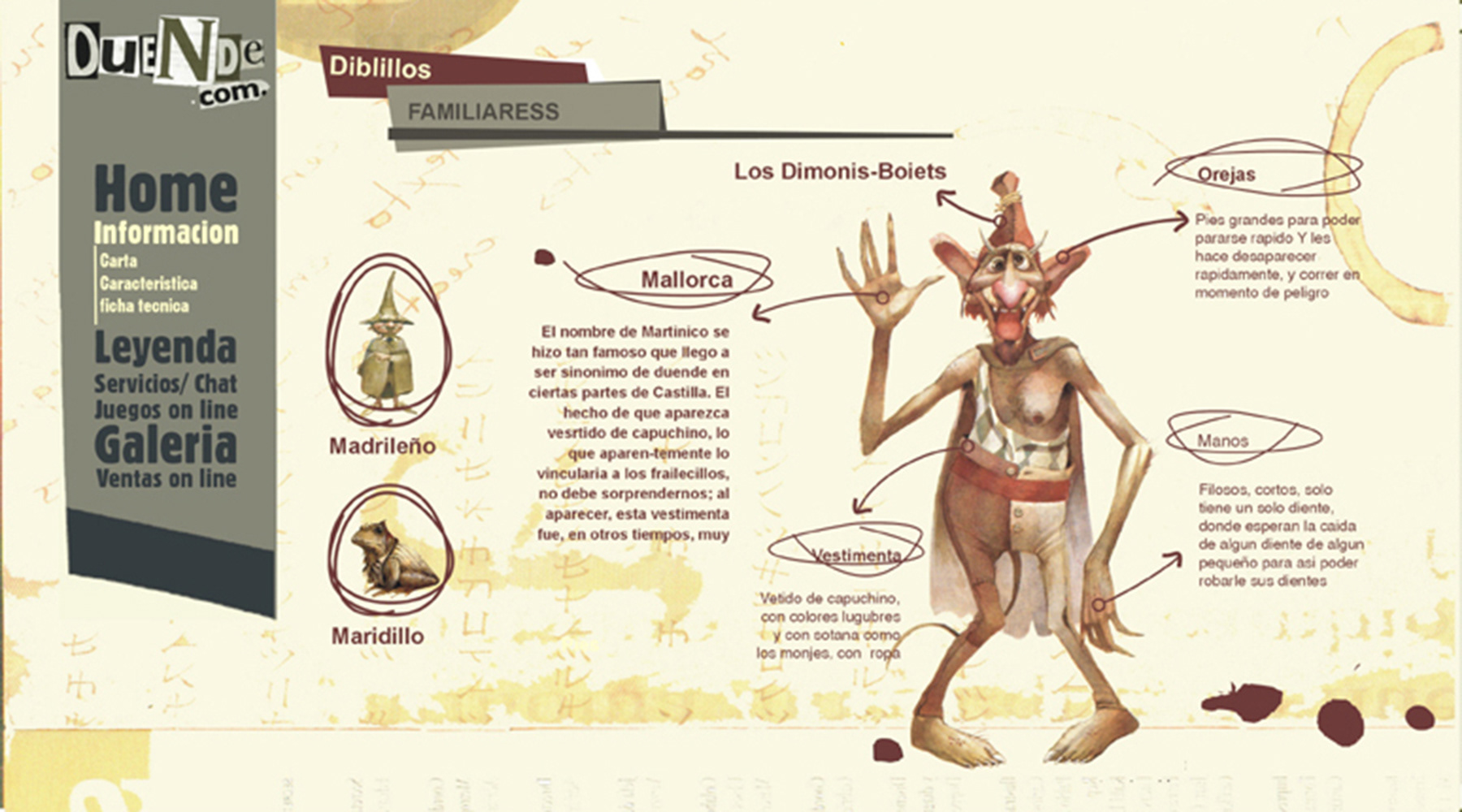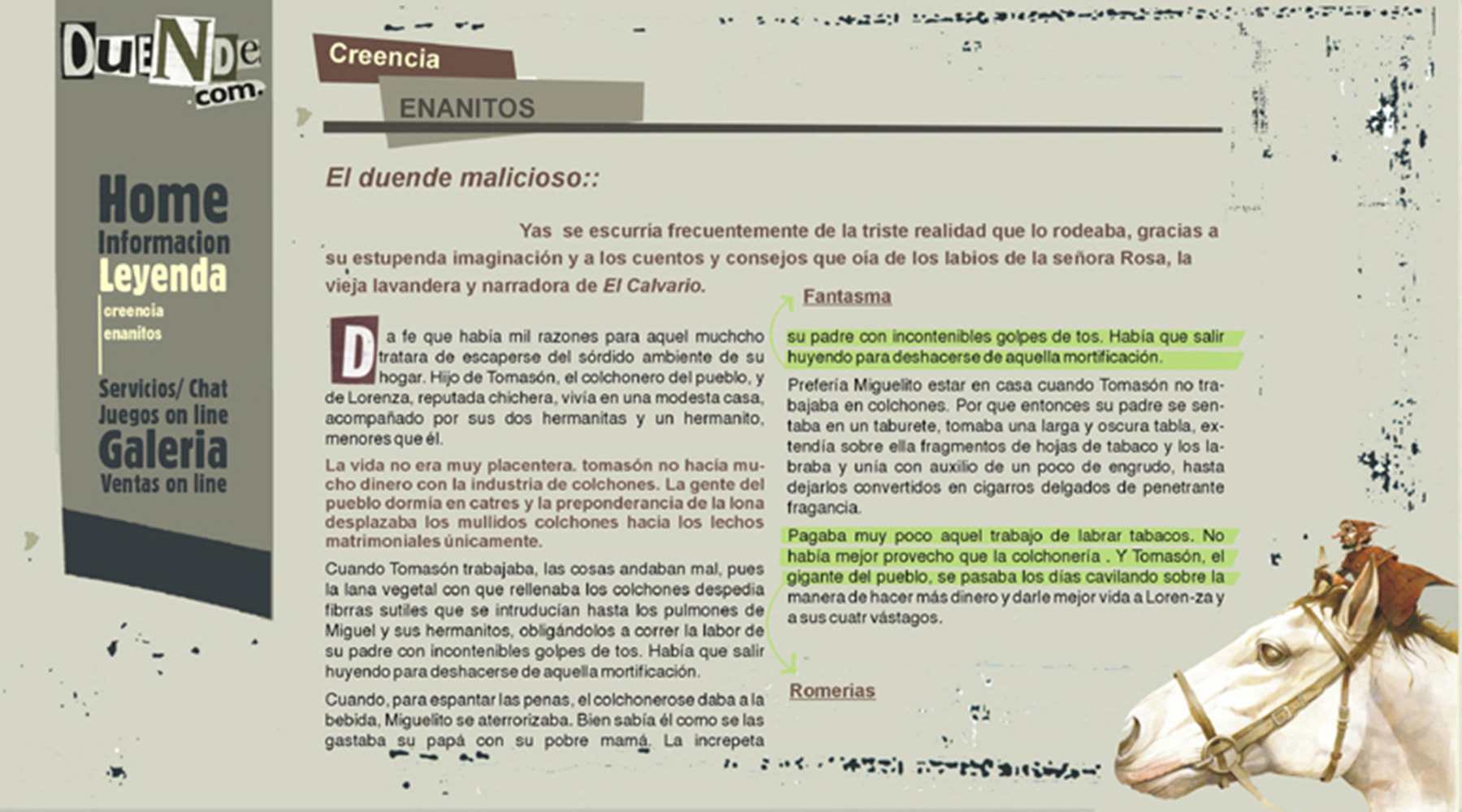 Diseño de web. Sitio de cuentos de duendes + juegos. Cliente. Duende.com, duendes hadas y gnomos. Espíritus vinculados a las casas y a los humanos. Web cuentos